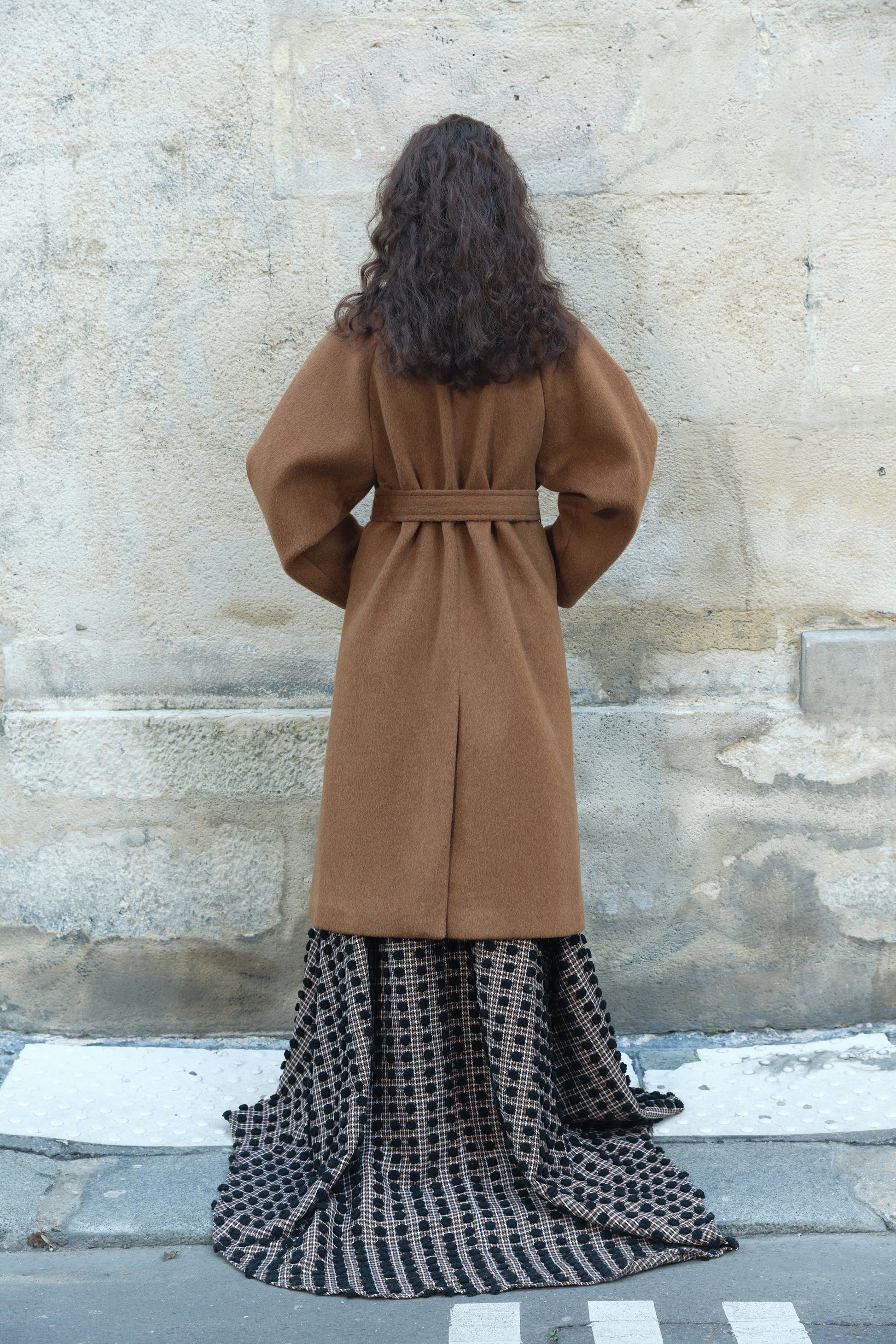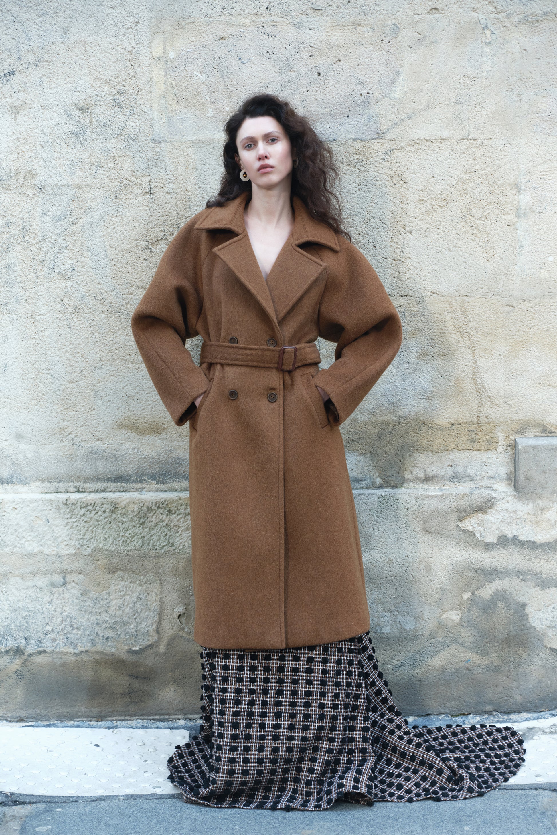 This classic double-breasted coat is crafted from premium cashmere and designed with a timeless, structured silhouette. It features a clean lapel, balanced proportions, and a refined tailored finish. The minimalist design makes it a versatile outerwear piece, offering warmth, elegance, and enduring style.