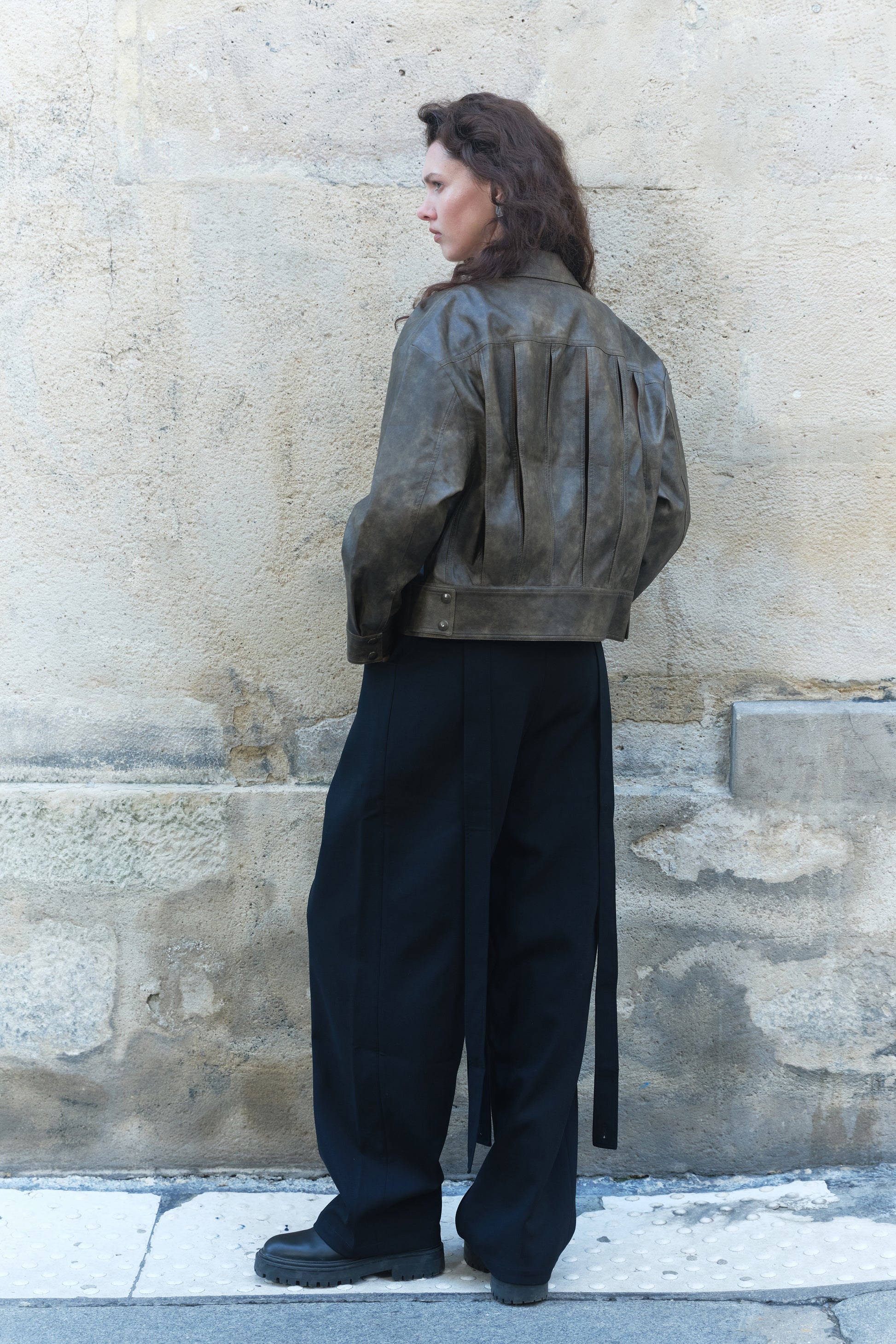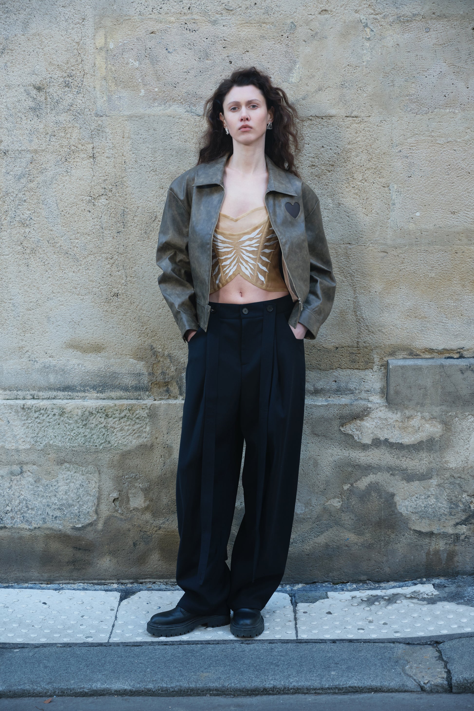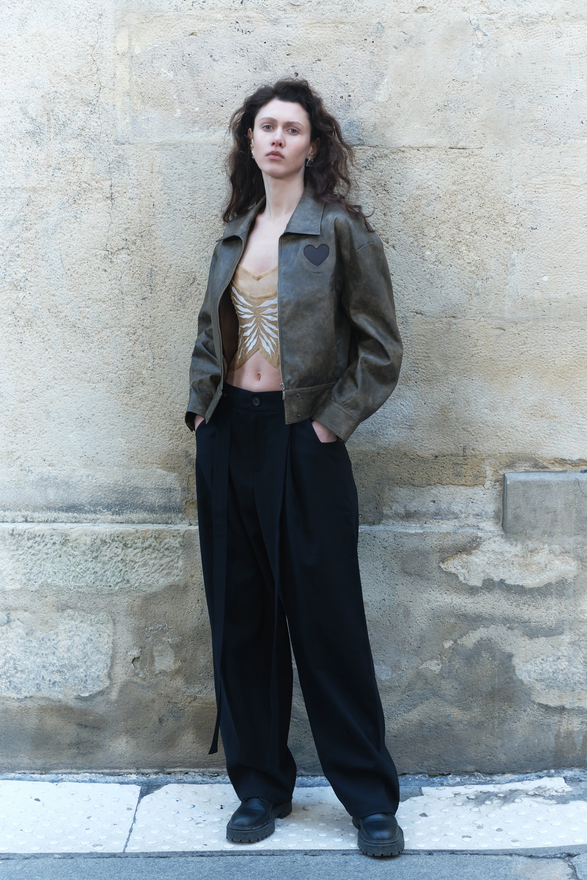This PU jacket is crafted from high-quality faux leather and features a clean, structured silhouette for a modern look. The standout detail is the black heart motif on the chest, which turns red when exposed to heat, adding an interactive and emotional touch to the design. Finished with a classic zip-front closure, it offers both style and comfort for everyday wear.
